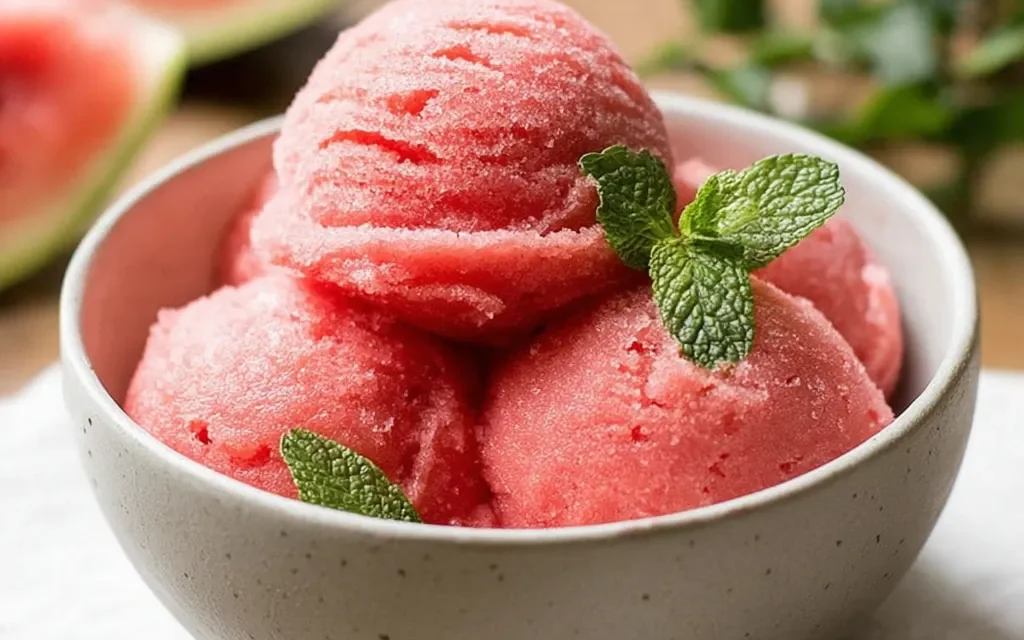 For make-ahead convenience, you can prepare the sorbet mixture up to 3 days in advance. Just blend the watermelon and sugar together, then transfer to a freezer-safe container and freeze. When you’re ready to serve, simply scoop and enjoy!