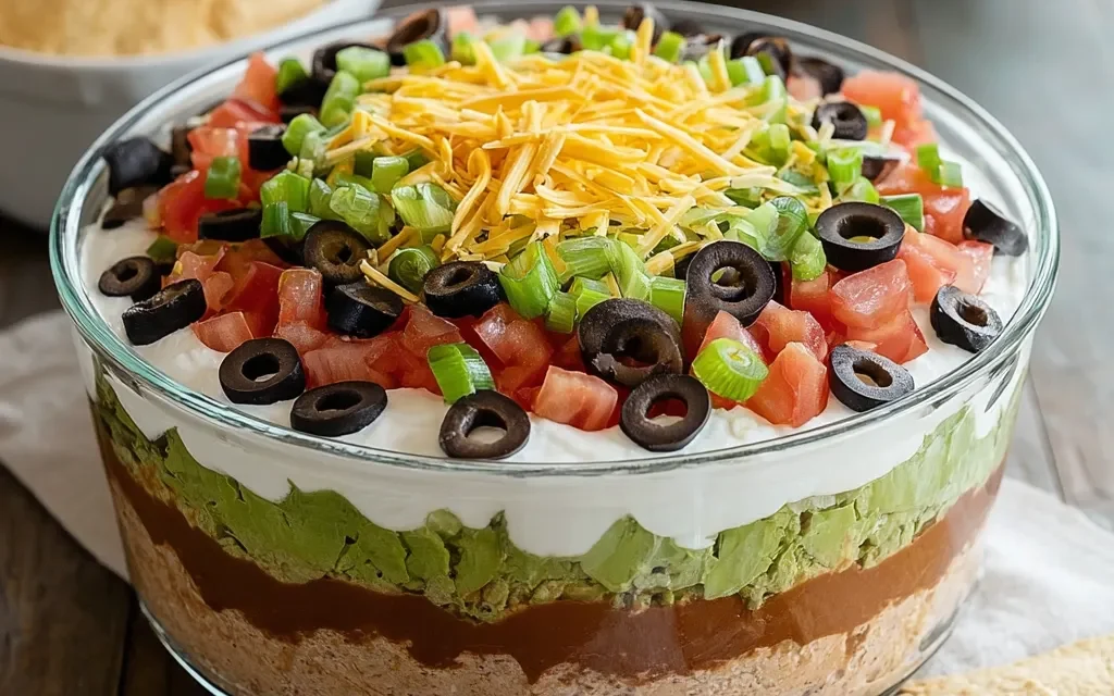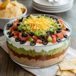 It was the summer of my junior year in college, and I was hosting my first real house party. I’ll never forget the look on my friends’ faces when I brought out the 7 Layer Taco Dip I had spent all afternoon preparing. Their eyes lit up as they gathered around the coffee table, chip in hand, ready to dive in. I still remember the way the cool, creamy sour cream blended with the zesty salsa, the shredded cheddar cheese that melted in your mouth, and the satisfying crunch of the black olives. It was an instant hit, and from that day on, 7 Layer Taco Dip became my go-to party dish.