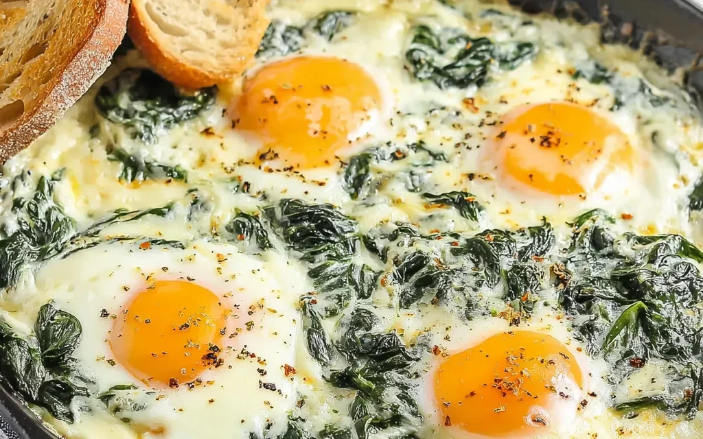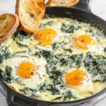 To make Baked Eggs Florentine more diet-friendly, you can try a few simple substitutions. For a gluten-free version, use gluten-free all-purpose flour in the béchamel sauce. For a low-carb or keto-friendly option, skip the bread and serve the Baked Eggs Florentine over roasted cauliflower or a bed of leafy greens.