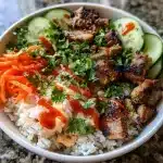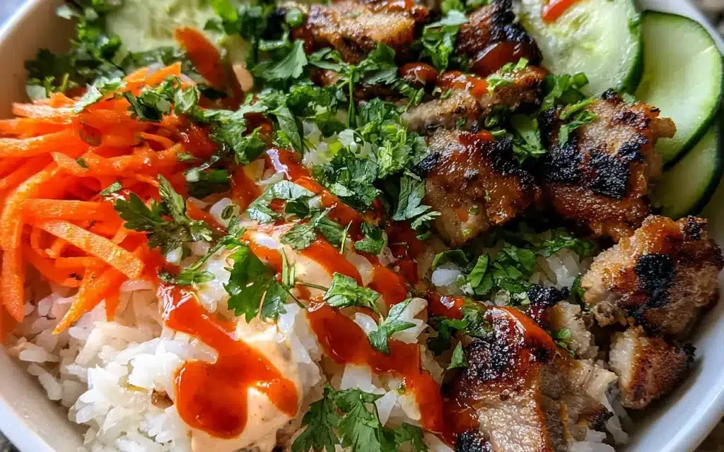 To make this Banh Mi Bowl a bit more diet-friendly, there are a few simple swaps you can try. For a low-carb version, skip the rice or noodles and serve the pork and veggies over a bed of leafy greens. You can also use a Greek yogurt-based sauce in place of the mayonnaise for a lighter, tangier flavor. And for a vegan or vegetarian option, swap the pork for crispy tofu or roasted mushrooms and use plant-based mayo.