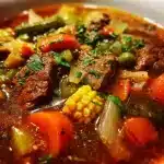 Growing up, Beef Vegetable Soup Recipe was a comforting staple in our household. Whenever the weather turned chilly, my mom would whip up a big batch of this hearty soup, filling our home with the most mouthwatering aroma. I can still remember coming home from school on those brisk autumn days, stomping my boots at the door, and being greeted by the sight of steam rising from the simmering pot on the stove. It’s a memory that instantly transports me back to that cozy kitchen, where the flavors of tender beef, robust vegetables, and savory broth would warm me from the inside out.
