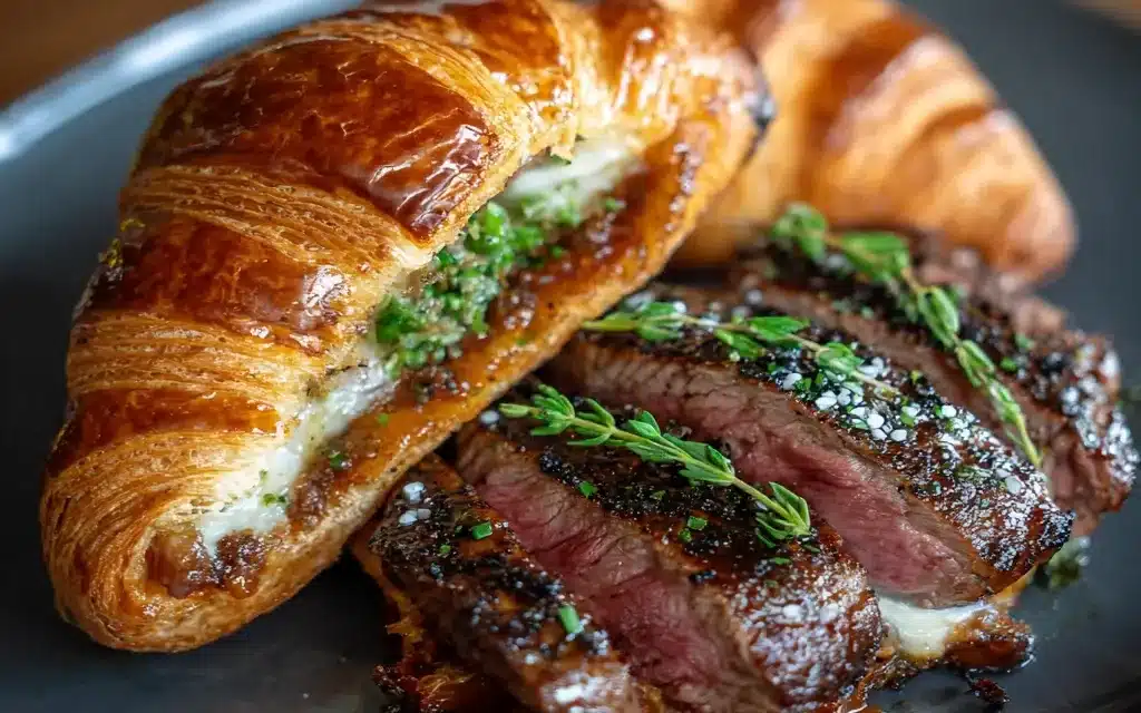 Creative Black Garlic Butter Steak & Brie Croissant Melt Variations