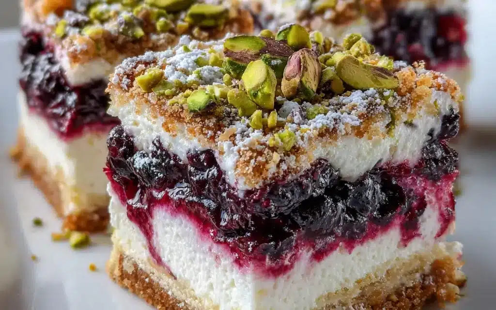 Indulge in the irresistible combination of juicy blackberries and crunchy pistachios in these decadent Blackberry Pistachio Dream Bars. A buttery, shortbread-like crust provides the perfect base for this heavenly treat.