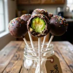 - Carefully insert a popsicle stick or lollipop stick into each cake pop, pressing gently to secure them in place. Now your Brussels Sprouts Cake Pops are ready to be coated in powdered sugar!
