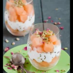 Refreshing and creamy, this Cantaloupe in Coconut Rose Cream is a delightful summertime dessert that combines the sweetness of juicy cantaloupe with the luxurious flavors of coconut and aromatic rose water.