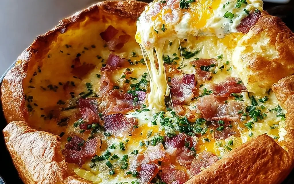 7. – Serve the Cheddar Bacon Dutch Baby warm, garnished with additional bacon if desired.