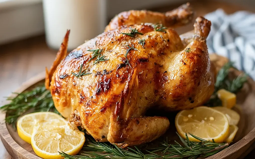 This Chicken Rotisserie Recipe serves 6 people and is the perfect centerpiece for a family dinner or special occasion. For the best dining experience, consider pairing it with roasted or mashed potatoes, a fresh green salad, and a crisp white wine or refreshing iced tea. The savory, herb-infused chicken pairs beautifully with simple, comforting sides that allow the star of the show to shine.