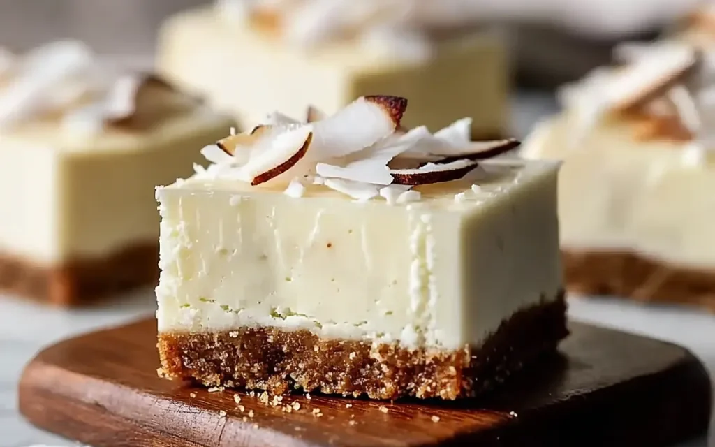 For a gluten-free version, use gluten-free cream cheese and substitute gluten-free graham crackers or crushed nuts for the coconut topping.