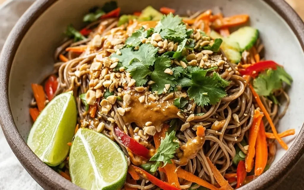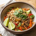 To make this cold peanut noodle salad suitable for various dietary needs, you can easily adapt the recipe. For a gluten-free version, use gluten-free pasta or spiralized vegetable noodles, such as zucchini or carrot noodles. To make it vegan, swap the honey in the dressing for maple syrup or agave nectar, and omit the optional roasted peanuts.