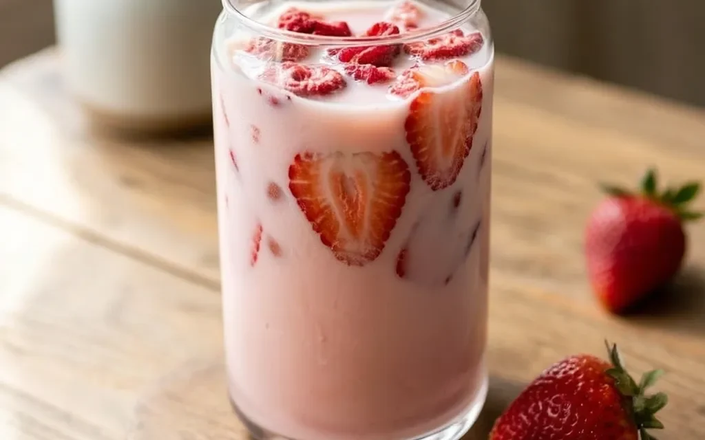 - 1 cup fresh or frozen strawberries: These juicy, sweet berries are the foundation of the Copycat Starbucks Pink Drink, providing the vibrant pink color and fruity flavor.