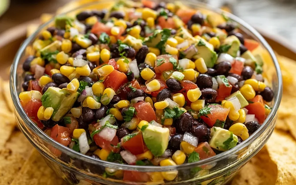 For a gluten-free option, serve it with gluten-free tortilla chips or vegetable crudités. To make it vegan, simply omit the olive oil and use a plant-based oil instead. And for a low-carb version, replace the corn with diced zucchini or jicama.