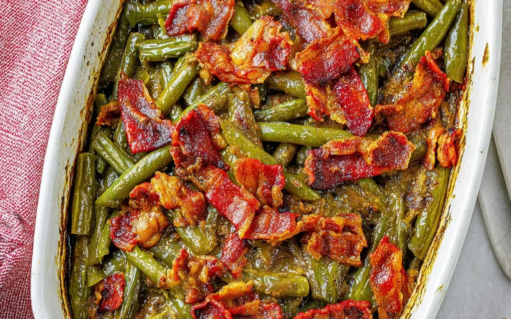 7. Serve the Crack Green Beans hot, garnished with additional bacon if desired.