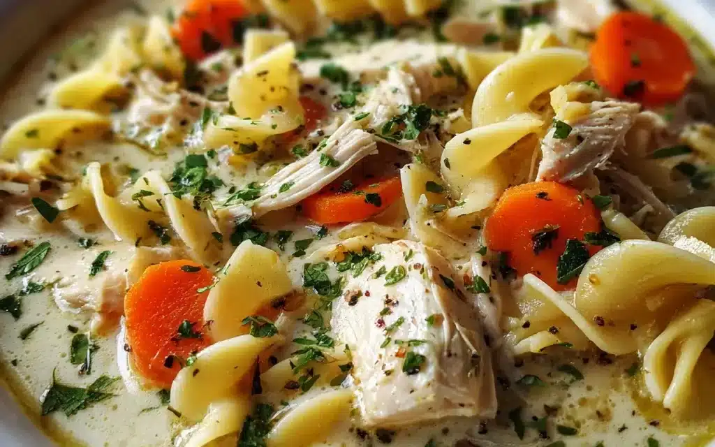 Indulge in the rich, velvety goodness of this Creamy Chicken Noodle Soup! A comforting and easy-to-make classic that’s perfect for chilly nights. Packed with tender chicken, hearty veggies, and perfectly cooked noodles, this soup is sure to warm your soul.