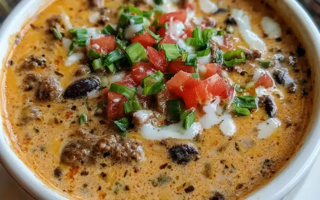 Indulge in the rich, creamy goodness of this Creamy Taco Soup. Loaded with seasoned ground beef, tender vegetables, and a flavorful broth, this comforting dish is perfect for a cozy weeknight meal.