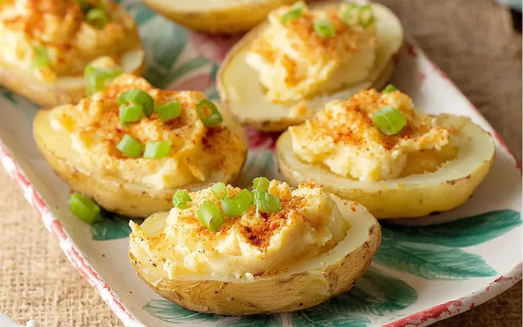 6- Serve your perfectly baked and beautifully garnished Deviled Potatoes warm, and get ready for the compliments to start pouring in!