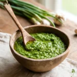 This Easy Garlic Scape Pesto is a quick, creamy, and flavorful topping or spread that’s perfect for pasta, bread, and more. Made with fresh garlic scapes, pine nuts, Parmesan, and a touch of lemon, it’s ready in just 5 minutes!