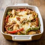 Fajita Chicken Casserole is a delicious and easy-to-make weeknight meal that’s packed with bold Tex-Mex flavors. Tender chicken, sautéed peppers and onions, and melty cheese come together in one comforting dish that the whole family will love.