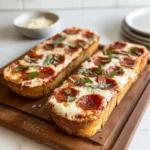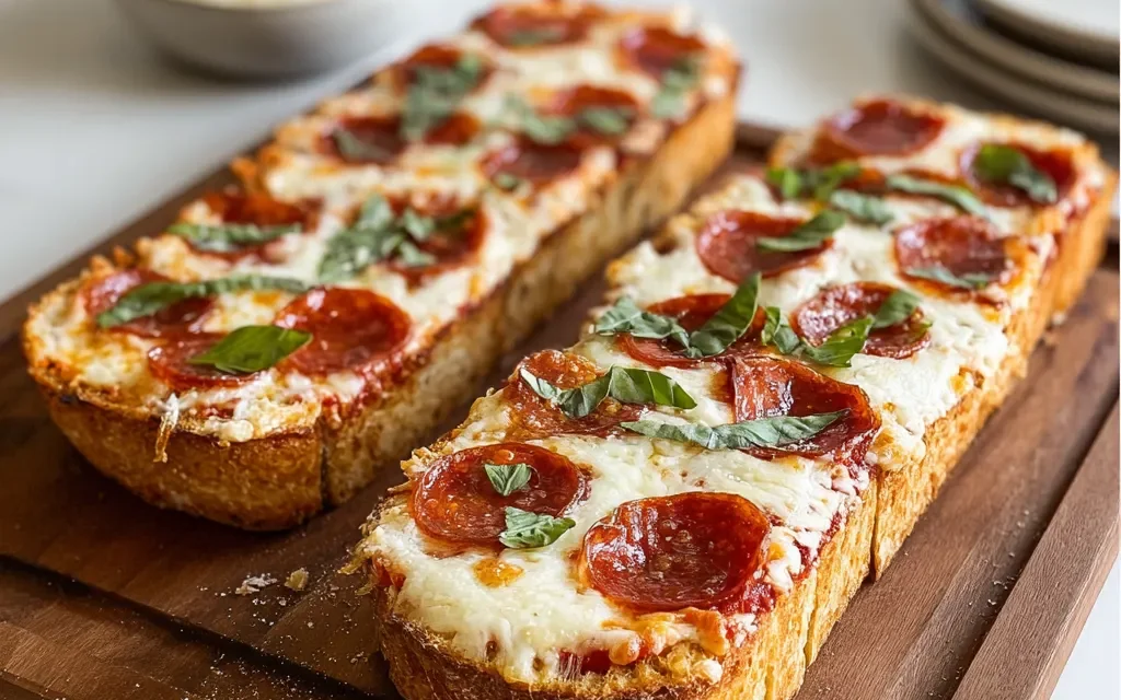 If you’re looking to make this recipe a bit more diet-friendly, there are a few easy substitutions you can try. For a gluten-free version, swap the French bread for a gluten-free baguette or use a pre-made gluten-free pizza crust. To make it vegan, replace the mozzarella and Parmesan cheeses with your favorite non-dairy alternatives, and opt for plant-based pepperoni or sautéed veggies as the toppings. For a low-carb twist, use a cauliflower-based or almond flour crust instead of the traditional French bread.