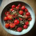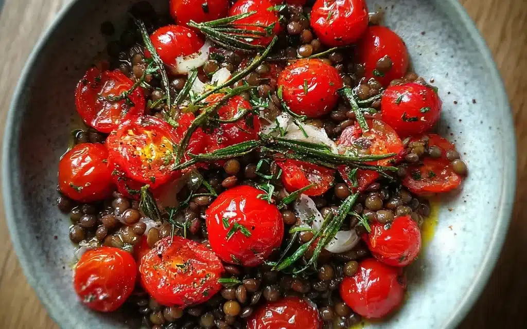 A: While you can use regular lentils, I highly recommend sticking with the French or du Puy variety. They hold their shape better and have a more earthy, robust flavor that pairs perfectly with the cherry tomatoes.
