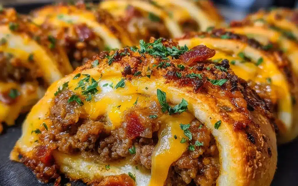 The ground beef and bacon provide the base for that classic cheeseburger flavor, while the cheddar cheese melts into gooey, cheesy perfection. The crescent roll dough gives you that fluffy, pillowy texture, and the garlic butter takes the whole dish to new heights.