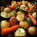 These Garlic Herb Roasted Potatoes, Carrots, and Zucchini are a simple, one-pan dish packed with flavor and nutrients. The vegetables are tossed in a garlic and herb-infused oil, then roasted to perfection until tender and caramelized.