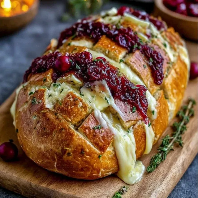 This Garlic Herb Sourdough Bread Stuffed With Brie & Cranberry is the ultimate comfort food, perfect for cozy autumn and winter gatherings. Serve it alongside a crisp green salad or roasted root vegetables for a complete meal. It also pairs beautifully with a glass of dry white wine or a seasonal craft beer.