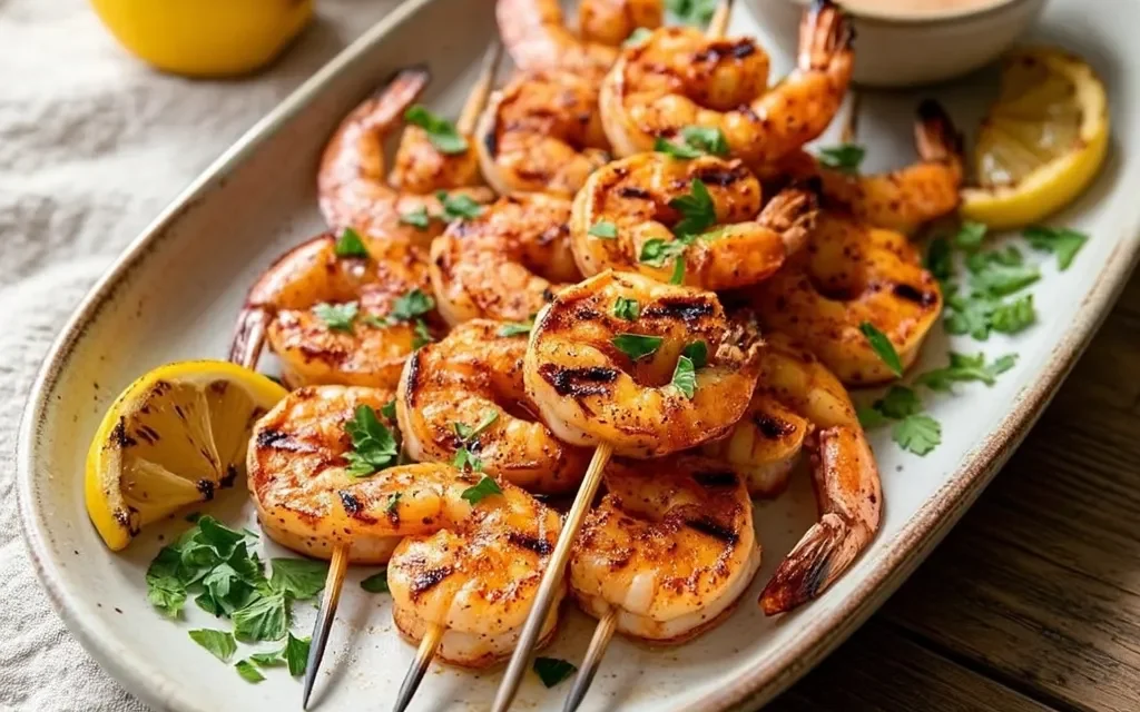 5. Serve the Grilled Cajun Shrimp Skewers immediately, garnished with fresh parsley or lemon wedges if desired.