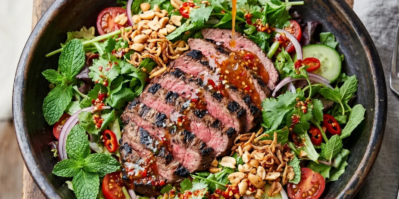 I can still vividly remember the first time I tried Grilled Thai Steak Salad. It was a scorching summer day, and I was craving something light, refreshing, and bursting with flavor. When my friend suggested we try this dish, I’ll admit I was a bit skeptical. But from the very first bite, I was hooked. The tender, marinated steak, the crisp veggies, and the tangy, sweet dressing all came together in perfect harmony, leaving me wondering why I hadn’t discovered this recipe sooner. Since then, Grilled Thai Steak Salad has become a go-to in my household, a dish I turn to when I want to impress guests or simply enjoy a delicious, healthy meal.