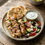 Tender, juicy chicken marinated in a vibrant Greek-inspired sauce, grilled to perfection, and served with fresh vegetables and pita bread. This Healthy Greek Chicken Souvlaki recipe is quick, easy, and full of authentic Mediterranean flavors.