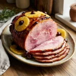 4- Once the ham is fully coated, transfer it to the preheated oven and bake for 90 minutes, basting it every 20 minutes with the remaining glaze. You’ll know the ham is ready when the glaze has caramelized, creating a beautiful, shiny crust.