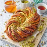 Honey Pistachio Babka Bread has become a true staple in my baking repertoire – it’s the perfect balance of sweet, salty, and absolutely irresistible. I first discovered this recipe a few years ago, and it’s been a hit with my family and friends ever since. There’s just something about the tender, flaky dough wrapped around a luscious honey-pistachio filling that makes it impossible to have just one slice.