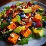 To make this Honey Sweet Potato Summer Salad suitable for various dietary needs, you can easily make a few adjustments. For a gluten-free version, simply omit the feta cheese or replace it with a dairy-free alternative. To make it vegan, swap the honey in the dressing for maple syrup or agave nectar, and use a plant-based cheese or omit it altogether. For a low-carb adaptation, reduce the amount of sweet potatoes and increase the leafy greens.