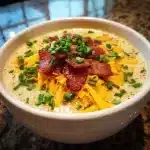 What sets this Loaded Potato Soup recipe apart is the careful attention to detail throughout the cooking process. From the way the potatoes are prepped to the perfect blend of seasonings, every step has been meticulously refined to deliver maximum flavor and texture. The result is a rich, velvety soup that tastes like it’s been simmering all day, but comes together quickly enough for a weeknight meal.