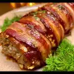 This Maple Whiskey-Glazed Meatloaf Wrapped in Bacon is a true showstopper, so it’s best served as the main course for a special occasion or family dinner. It pairs beautifully with classic mashed potatoes, roasted vegetables, or a fresh green salad. For a beverage, a bold red wine or a craft cocktail featuring whiskey would be the perfect complement.