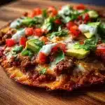 This Mexican Pizza Recipe is truly a masterpiece, blending the bold flavors of Mexico with the comfort of a homemade pizza. From the creamy refried beans to the zesty taco meat and the melty, gooey cheese, every bite is a flavor explosion that will have your taste buds doing a happy dance.