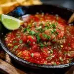 This authentic Mexican Red Salsa Recipe is a mouthwatering, flavor-packed dip that’s ready in just 10 minutes. Bursting with the perfect balance of juicy tomatoes, tangy lime, and a kick of heat, this salsa is a crowd-pleasing classic.
