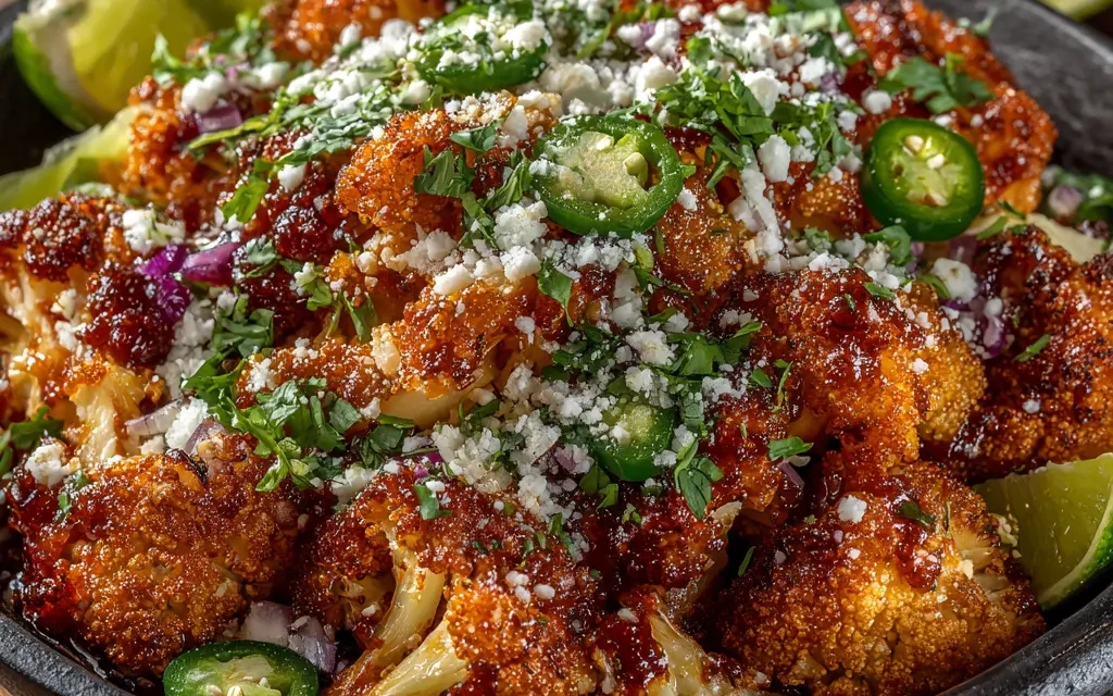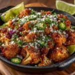 5- Remove the Mexican Street cauliflower from the oven and immediately squeeze fresh lime juice over the top, letting the tangy flavors soak in.