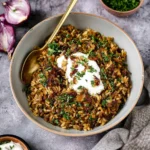 Mujadara is a beloved Lebanese dish that combines lentils and rice in a savory, aromatic, and nourishing one-pot meal. This easy-to-make version is packed with flavor and perfect for a comforting weeknight dinner.
