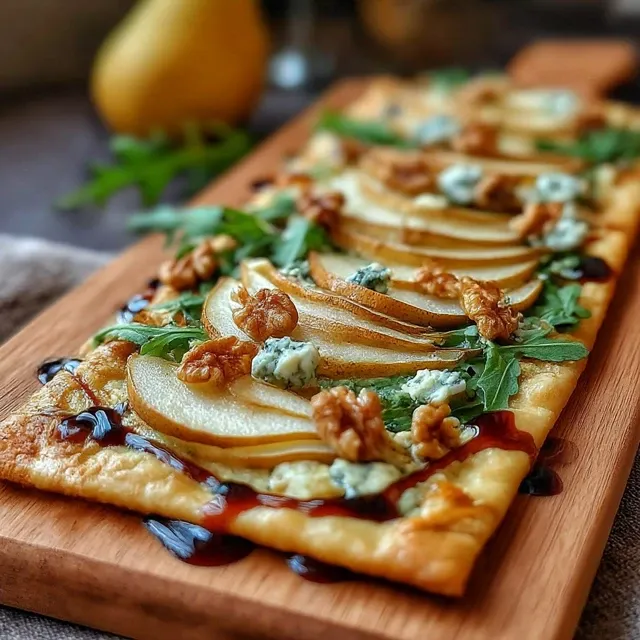 This Pear, Gorgonzola, and Walnut Flatbread is the perfect centerpiece for a cozy gathering or casual weeknight dinner. Serve it alongside a fresh green salad for a light and balanced meal. For a heartier option, pair it with a creamy tomato or butternut squash soup. And don’t forget a glass of crisp white wine or a refreshing craft beer to complement the flavors.