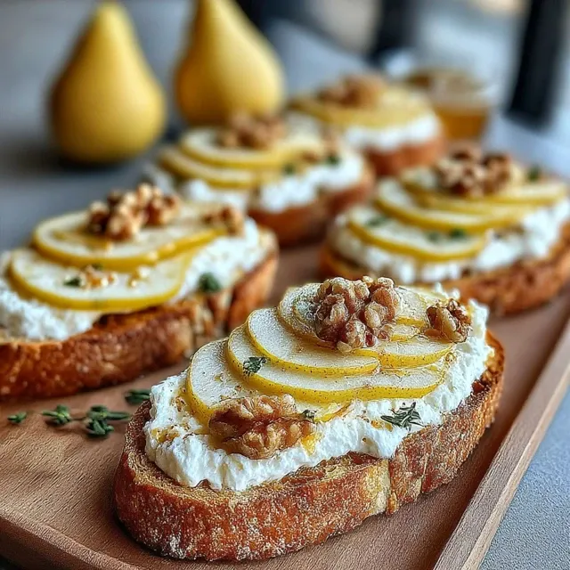 For best results, use ripe, juicy pears that are slightly firm. You can also experiment with different types of cheese, such as brie or blue cheese, to create your own unique flavor profile. These bruschetta can be made ahead of time and assembled just before serving.