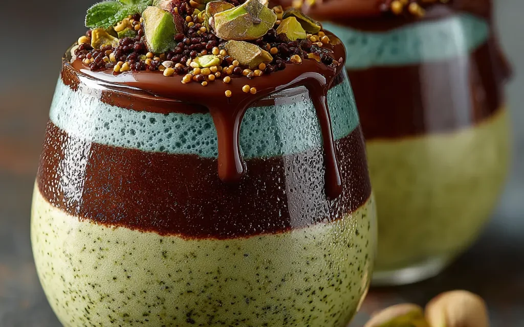 Indulge in this luxurious Pistachio Mousse with a silky Chocolate Ganache topping. The rich, creamy pistachio base is perfectly balanced by the decadent chocolate, creating a heavenly dessert that’s sure to impress.