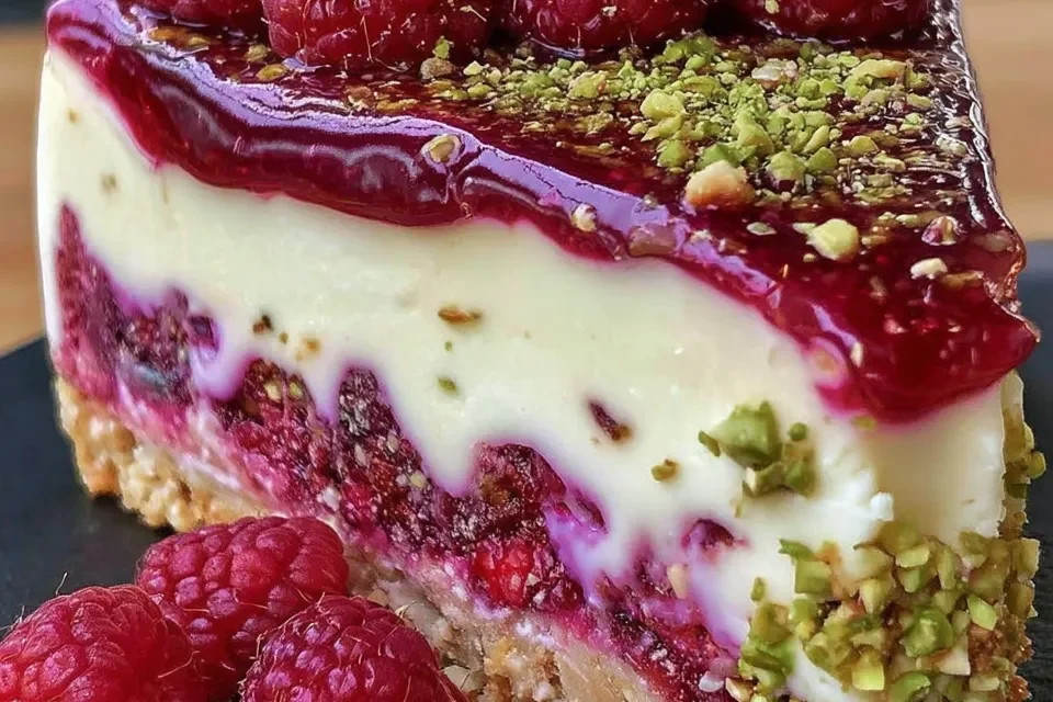 The Secret Behind Perfect Pistachio Raspberry Crunch Cheesecake