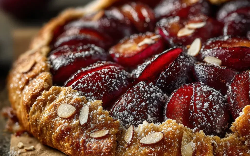 9. 9. Dust the plum galette with powdered sugar and serve warm or at room temperature.