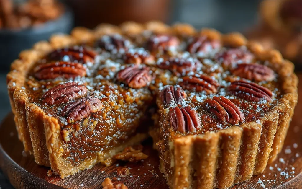 For a gluten-free version, use a pre-made gluten-free pie crust or make your own with a gluten-free flour blend. To cut down on sugar, you can use a low-calorie sweetener in place of some of the brown sugar. And for a vegan twist, swap the eggs and butter for plant-based alternatives.