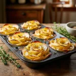 These Rose-Shaped Potato Gratin Stacks are the perfect side dish for a variety of main courses. They pair beautifully with roasted chicken, pan-seared pork chops, or even a juicy steak. For a vegetarian option, they complement a fresh green salad or a hearty vegetable medley.