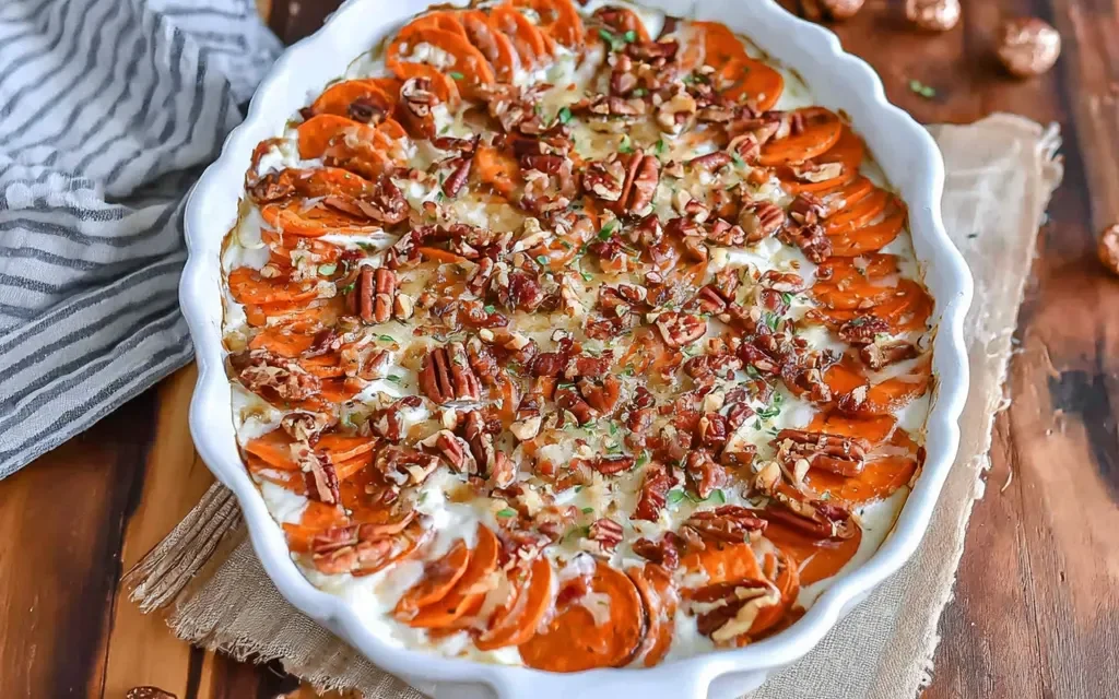 Scalloped Sweet Potatoes, Sweet Potatoes Au Gratin is a comforting, flavor-packed casserole that’s sure to become a new family favorite. With its creamy sauce, melted cheese, and perfectly cooked sweet potato slices, it’s a dish that brings back all the nostalgia of the holidays while still being an impressive side any time of year.