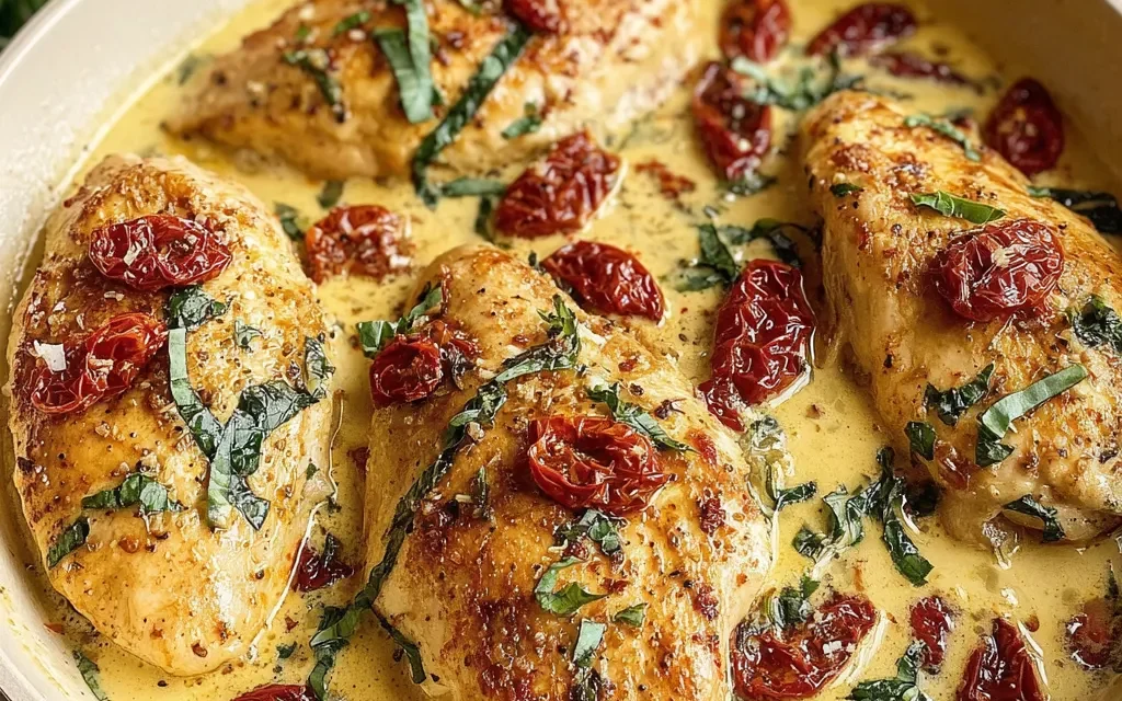 3. Pour the cream mixture over the chicken, making sure the chicken is fully submerged.