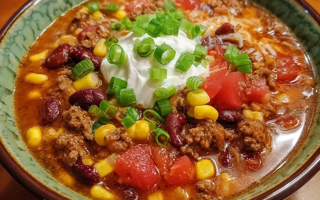 Slow Cooker Taco Soup is a hearty, flavor-packed dish that’s perfect for busy weeknights. This easy-to-make soup is loaded with tender ground beef, beans, tomatoes, and a blend of spices that create a comforting and satisfying meal.