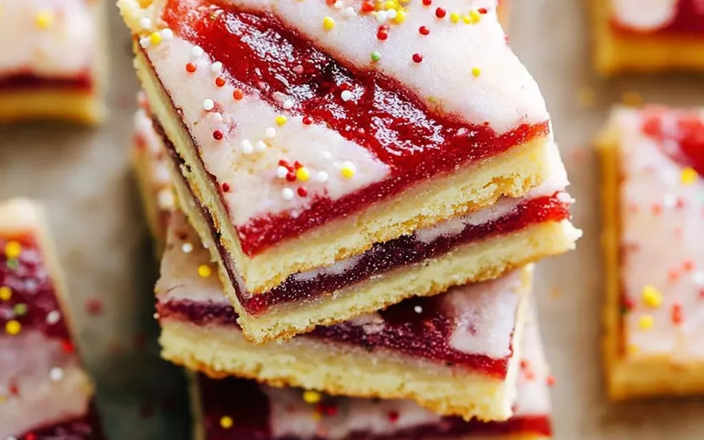You know, I’ll never forget the first time I made Strawberry Pop Tart Cookie Bars. It was a few years ago when my friend Jenna was having a little get-together at her place, and she asked me to bring a fun, easy dessert. I was racking my brain, trying to come up with something that would really wow everyone, when I stumbled across this Strawberry Pop Tart Cookie Bars recipe. I have to admit, I was a little skeptical at first – I mean, who would have thought to combine pop tarts and cookie bars? But the more I read through the recipe, the more intrigued I became. I decided to give it a shot, and let me tell you, the moment I pulled those Strawberry Pop Tart Cookie Bars out of the oven, the smell was absolutely heavenly. Everyone at Jenna’s party went crazy for them, and I’ve been making them ever since. They’ve become my go-to dessert for any occasion, from potlucks to holiday parties. There’s just something about that perfect combination of the buttery, crumbly cookie base, the gooey strawberry pop tart filling, and the sweet glaze on top that is simply irresistible.